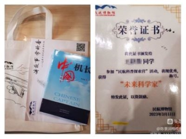活动接近尾声,博物馆给同学们颁发了“未来科学家”的证书,并赠送了精美的纪念品。