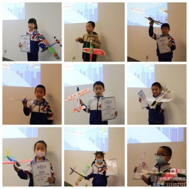 手持证书和亲手设计的飞机模型,大家的脸上写满自豪与骄傲。