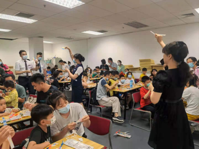 在科普完客舱安全知识之后,活动来到第二部分,也是大家最期待的部分:航模制作。在老师的带领下,每位小朋友都认真完成了属于自己的航模拼装。